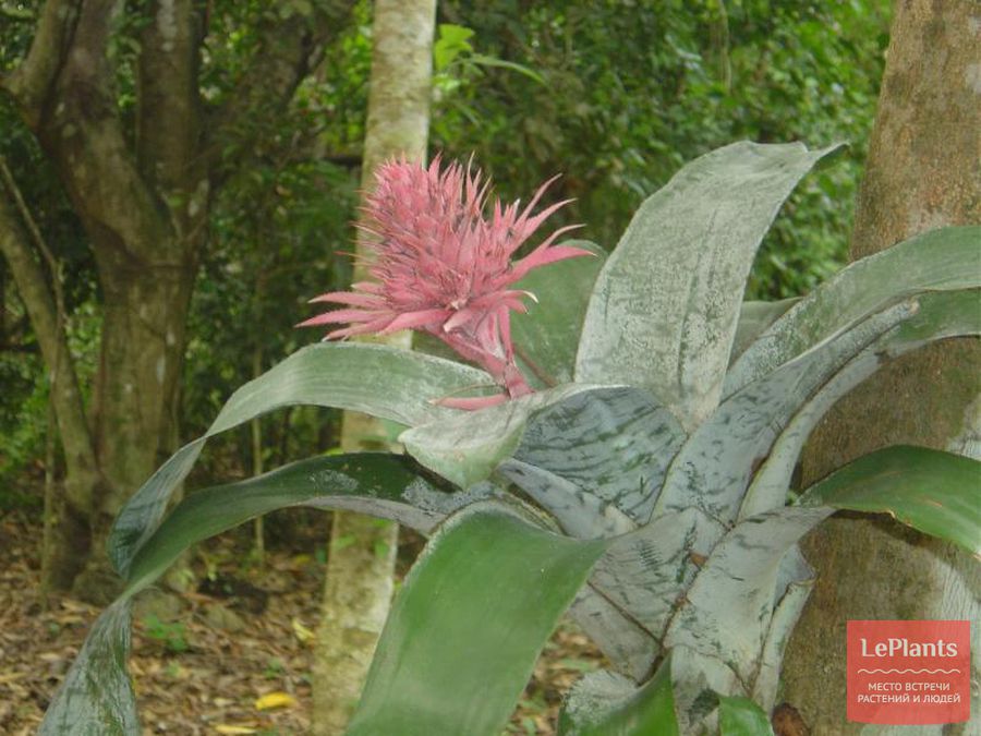 НА СВІТЛИНІ: Ехмея – епифит, в природі росте на інших рослинах, як правило, на деревах, але не є паразитом. Живильні речовини Ехмея отримує з води і гниючих залишків листя, що скупчилися в ущелинах кори. Свої корені рослина використовує тільки для того, щоб триматися.