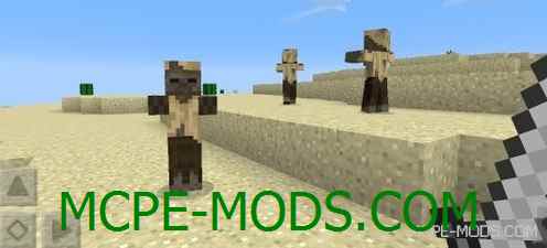 Зомбі-мумія (піщаний моб) буде, навпаки, з’являтися в жарких Біоми, тип савани, пустелі. Він не буде горіти на сонці. При ударі буде завдавати шкоди і голод.
