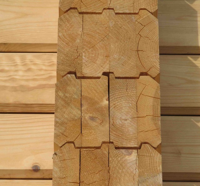 Найбільш якісним вважається клеєний брус, що виготовляється з різних порід деревини. Так, зовнішні шари бруса нерідко збираються з стійкою до зовнішніх впливів модрини, а внутрішні – з сосни, яка відрізняється більш низькою теплопровідністю.