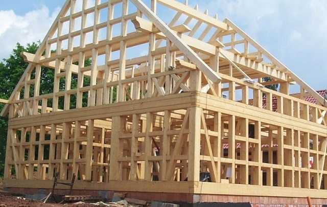 Каркас стін в цьому випадку, збирається з масивних брусів, що мають перетин в 150 × 150 або 200 × 200 мм, і потужних балок перекриття. Іноді для формування каркаса застосовуються дошки перетином 150 ÷ 100 або 200 × 100 мм, де більший показник визначить товщину стін.